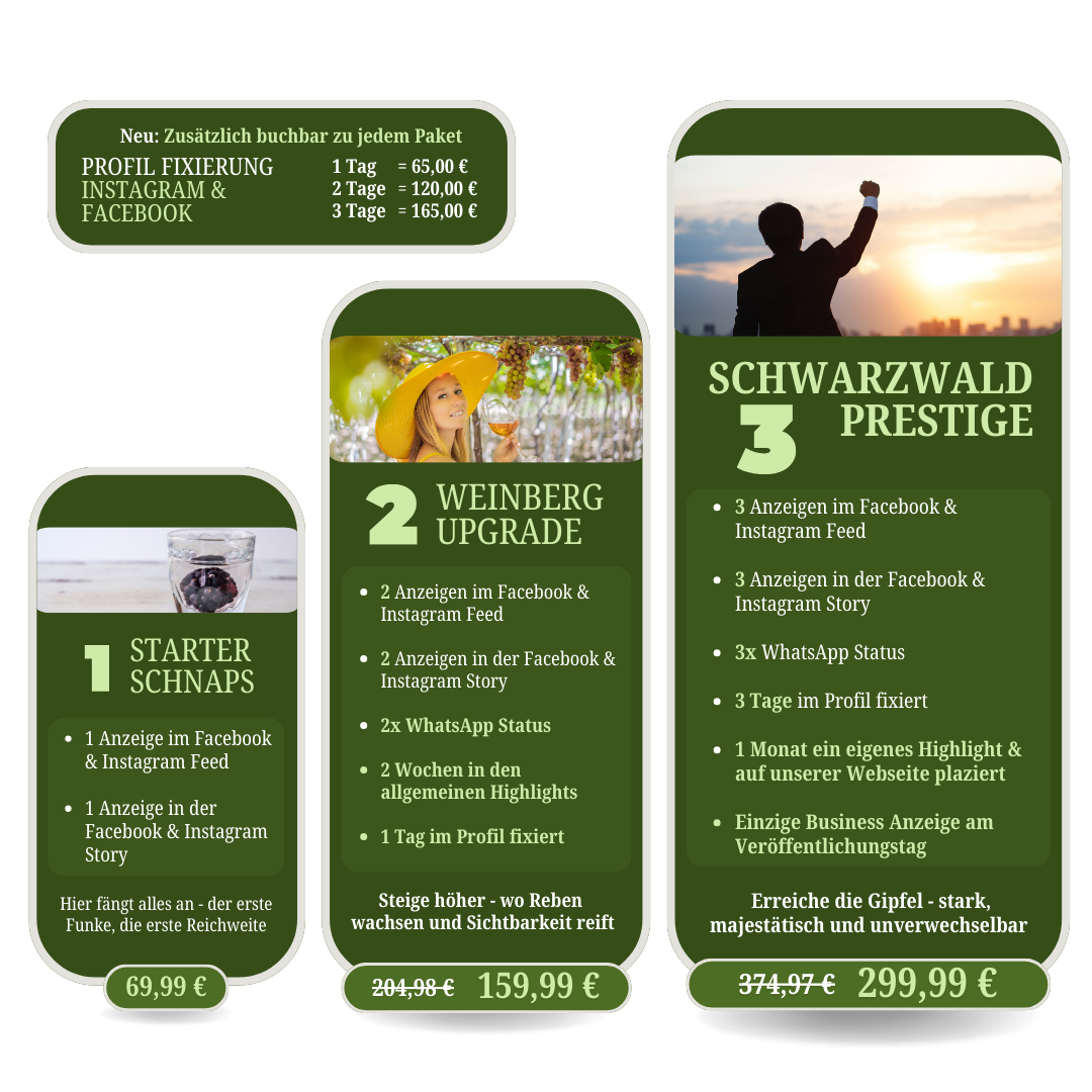 (Weinberg Upgrade) und 3 (Schwarzwald Prestige).