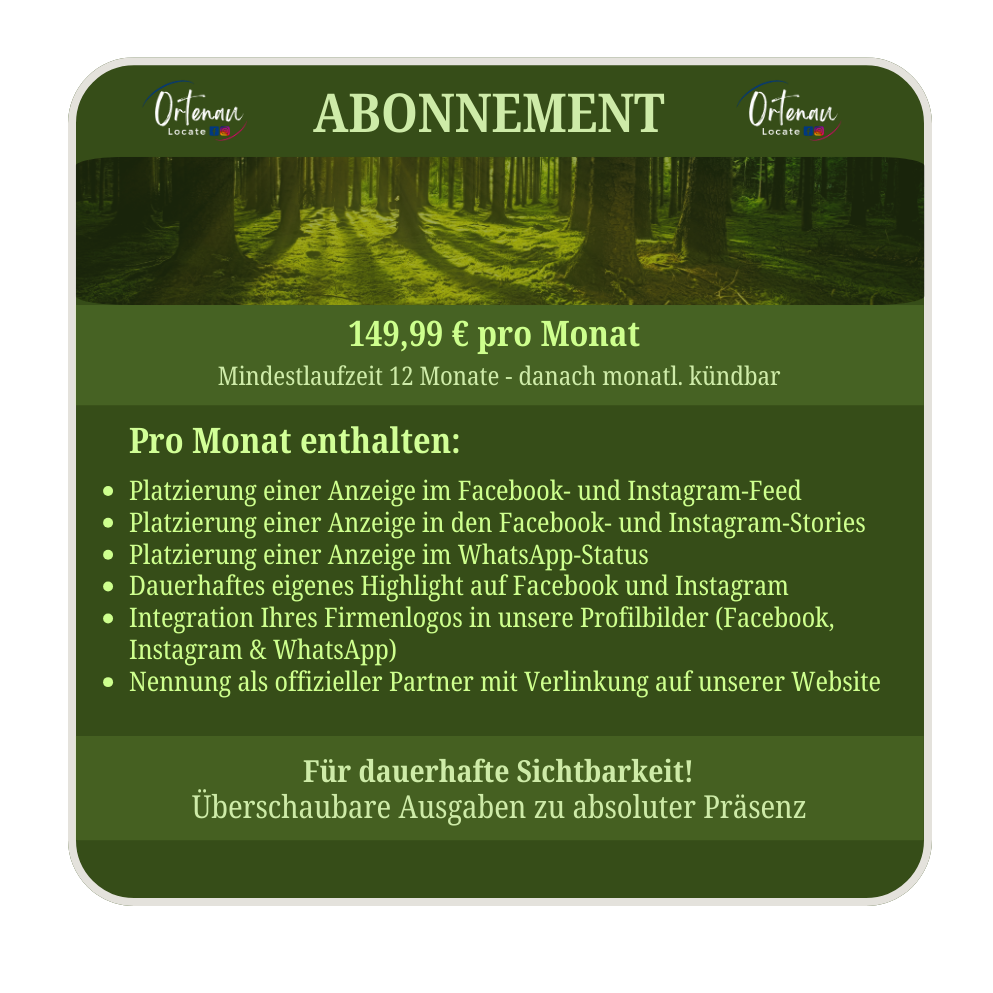 Melden Sie sich gerne jederzeit über das Kontaktformular oder bei Ortenau Locate auf Facebook, Instagram oder WhatsApp unter der 0156 789 785 41